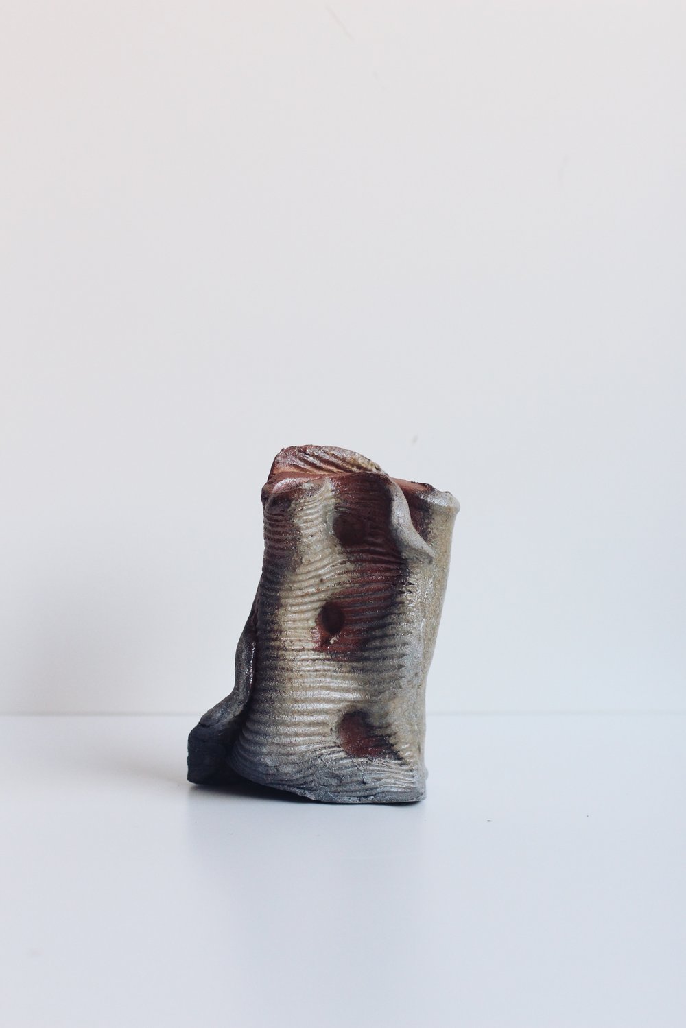 Folded Slab woodfired at Oxford University Kilns for 5 days. Ash deposits. Carbon trapping. Finger pressure points.